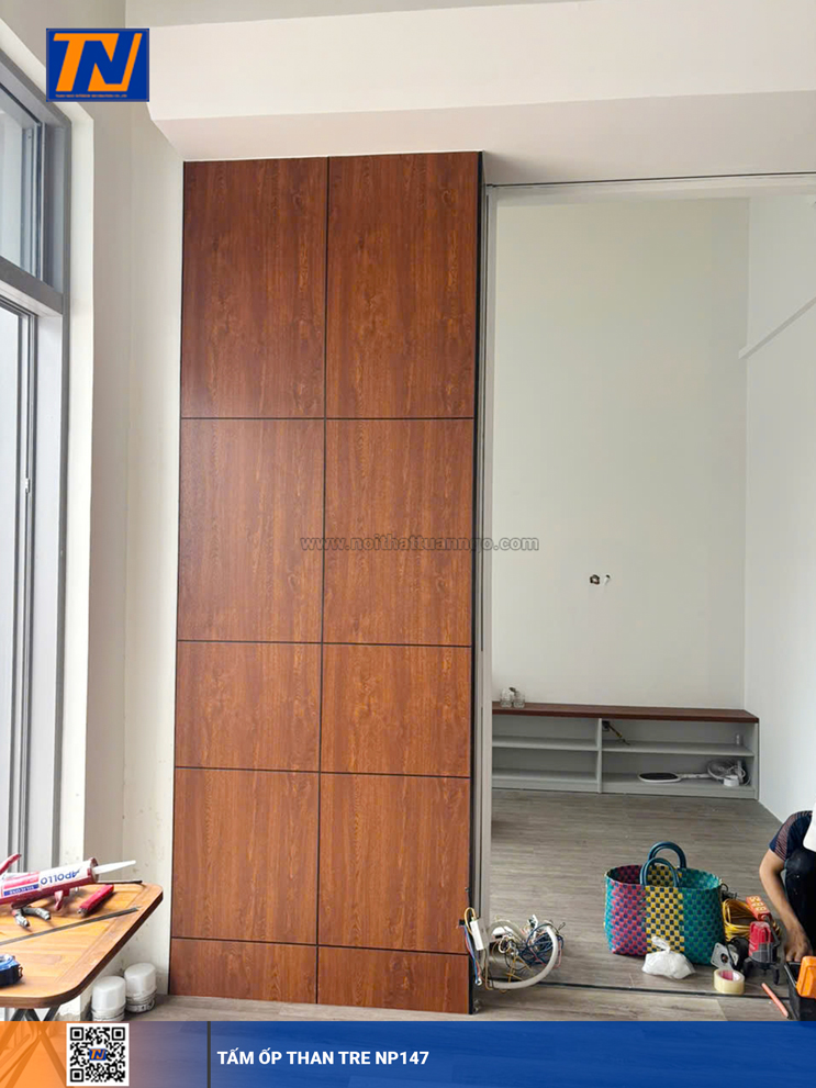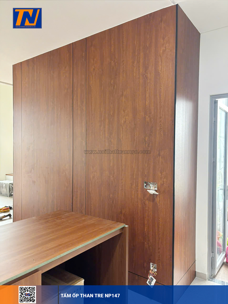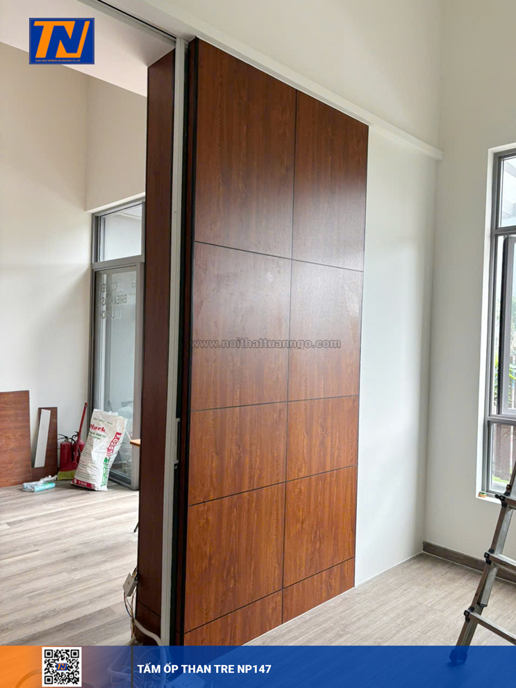 Nếu bạn yêu thích sự sang trọng nhưng vẫn muốn giữ lại nét ấm cúng trong không gian sống, thì tấm ốp than tre vân gỗ màu đỏ chính là lựa chọn lý tưởng. Gam đỏ gỗ nổi bật giúp bức tường trở thành điểm nhấn tinh tế, mang lại cảm giác ấm áp, gần gũi nhưng không kém phần hiện đại.