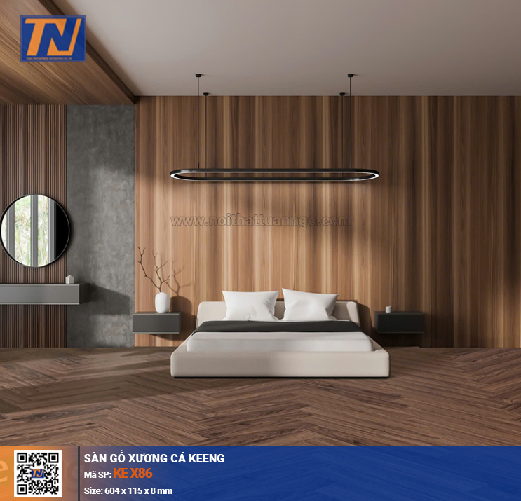 Sàn gỗ xương cá Keeng mang đến vẻ đẹp tinh tế, sang trọng và đầy nghệ thuật cho không gian sống. Với công nghệ sản xuất hiện đại và lõi xanh chống ẩm, sàn Keeng đảm bảo độ bền cao, chịu nước tốt, phù hợp cho mọi khu vực trong nhà – từ phòng khách, phòng ngủ đến văn phòng cao cấp.