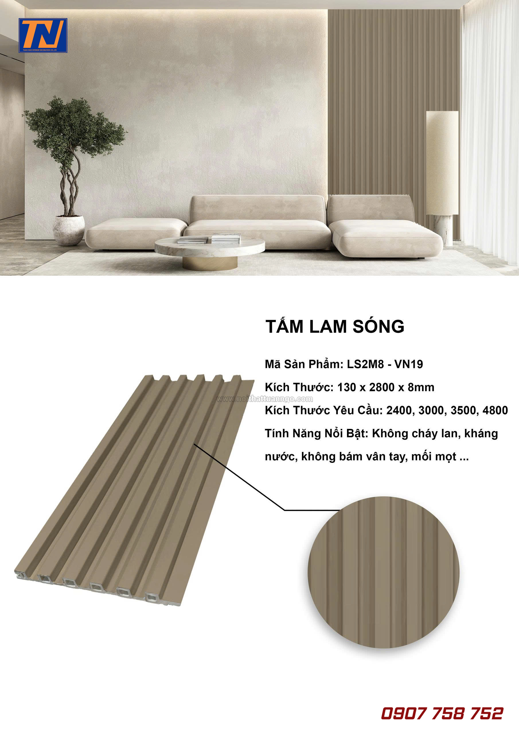 Tấm lam sóng VNwall được sản xuất từ nhựa nguyên sinh cao cấp, có khả năng chống ẩm, chống mối mọt, bề mặt vân gỗ sắc nét, mang đến cảm giác ấm áp và tự nhiên cho mọi không gian.