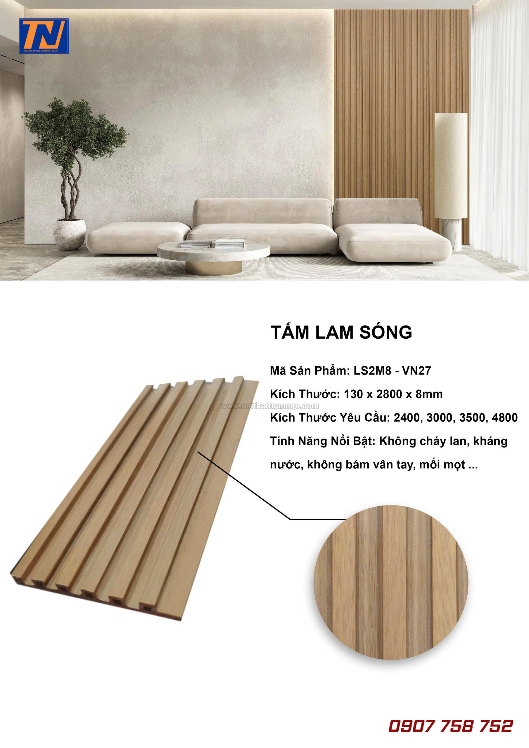 Tấm lam sóng VNwall được sản xuất từ nhựa nguyên sinh cao cấp, có khả năng chống ẩm, chống mối mọt, bề mặt vân gỗ sắc nét, mang đến cảm giác ấm áp và tự nhiên cho mọi không gian.