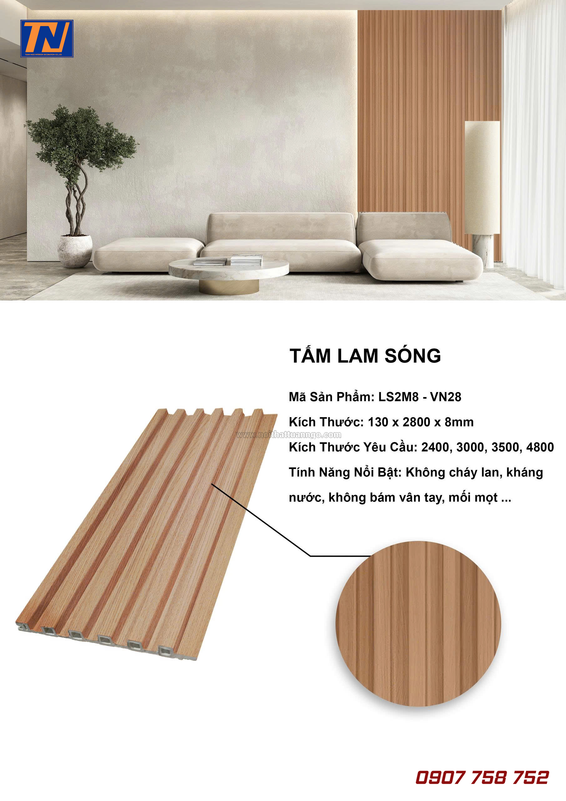 Tấm lam sóng VNwall được sản xuất từ nhựa nguyên sinh cao cấp, có khả năng chống ẩm, chống mối mọt, bề mặt vân gỗ sắc nét, mang đến cảm giác ấm áp và tự nhiên cho mọi không gian.