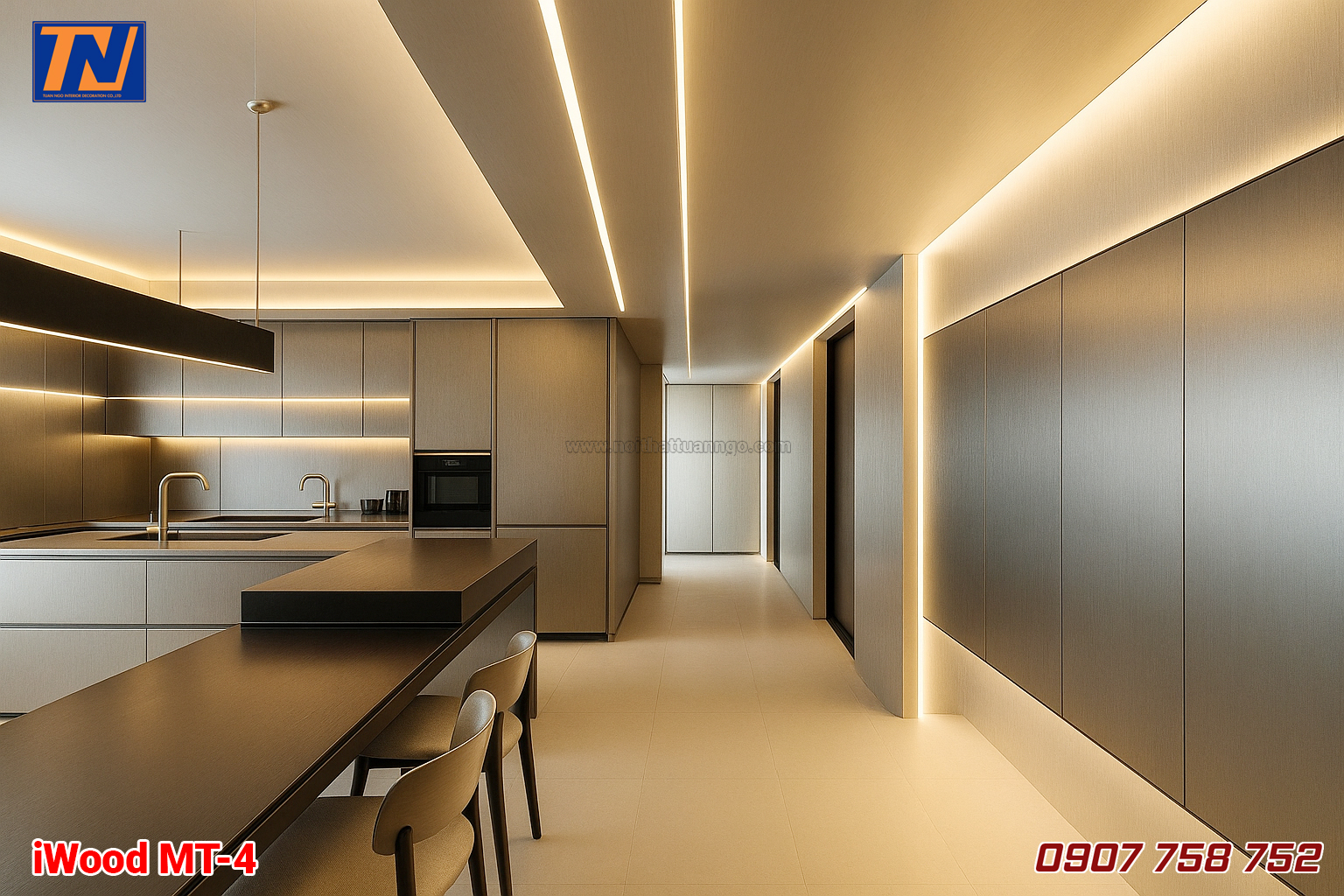 Nội Thất Tuấn Ngô cung cấp và thi công tấm ốp than tre inox xước iWood – giải pháp hoàn hảo cho không gian nội thất cao cấp. Bề mặt vân inox xước tạo hiệu ứng ánh kim tinh tế, chống bám bụi, chống ẩm, dễ lau chùi và giữ màu lâu bền theo thời gian.
