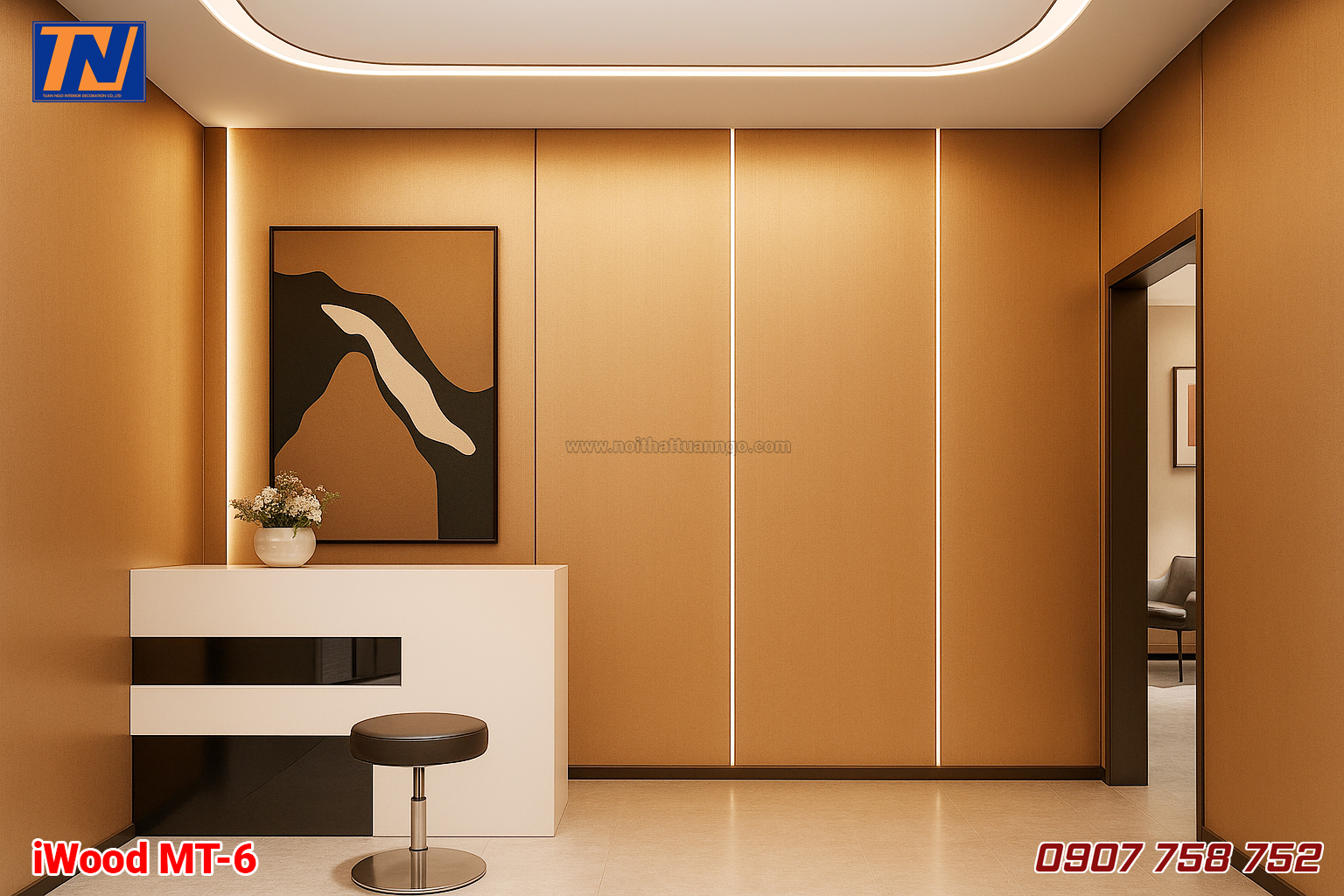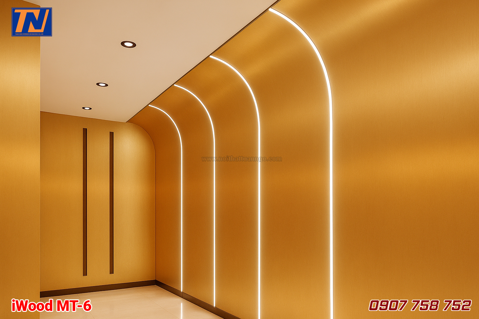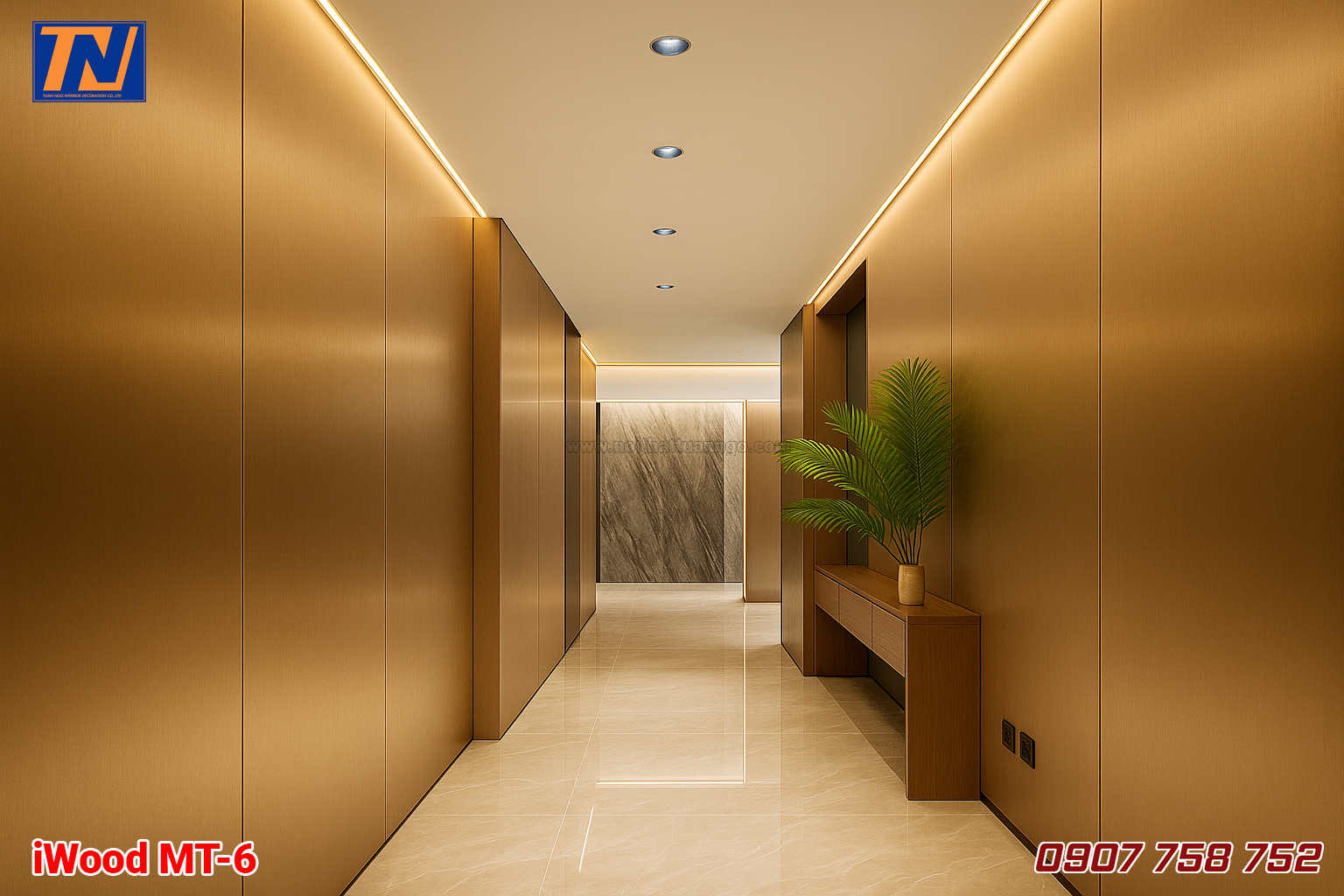 Nội Thất Tuấn Ngô cung cấp và thi công tấm ốp than tre inox xước iWood – giải pháp hoàn hảo cho không gian nội thất cao cấp. Bề mặt vân inox xước tạo hiệu ứng ánh kim tinh tế, chống bám bụi, chống ẩm, dễ lau chùi và giữ màu lâu bền theo thời gian.