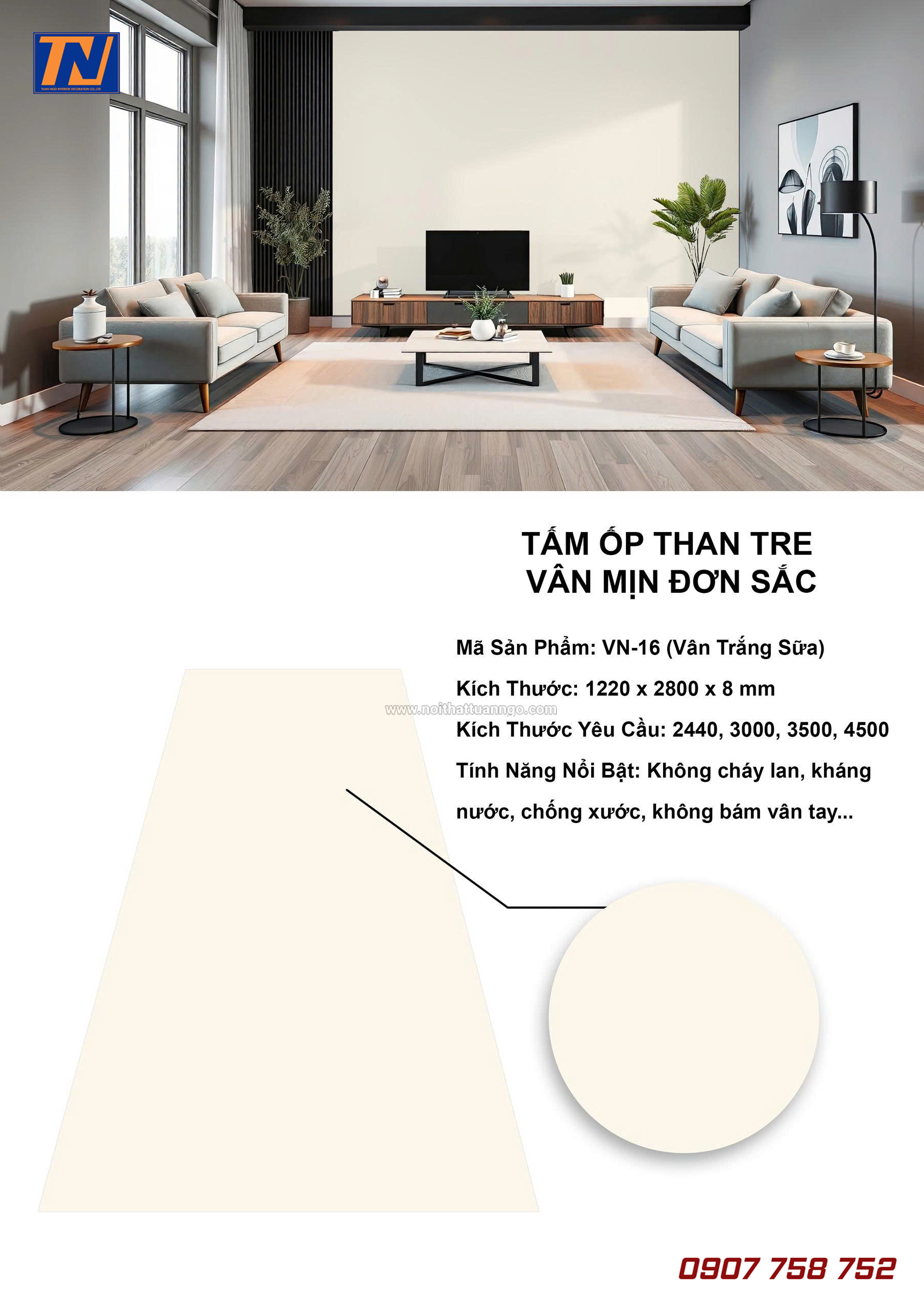 Nội Thất Tuấn Ngô tự hào là đơn vị cung cấp tấm ốp than tre VNwall chính hãng, mang đến không gian sống sang trọng – tinh tế – bền đẹp theo thời gian.