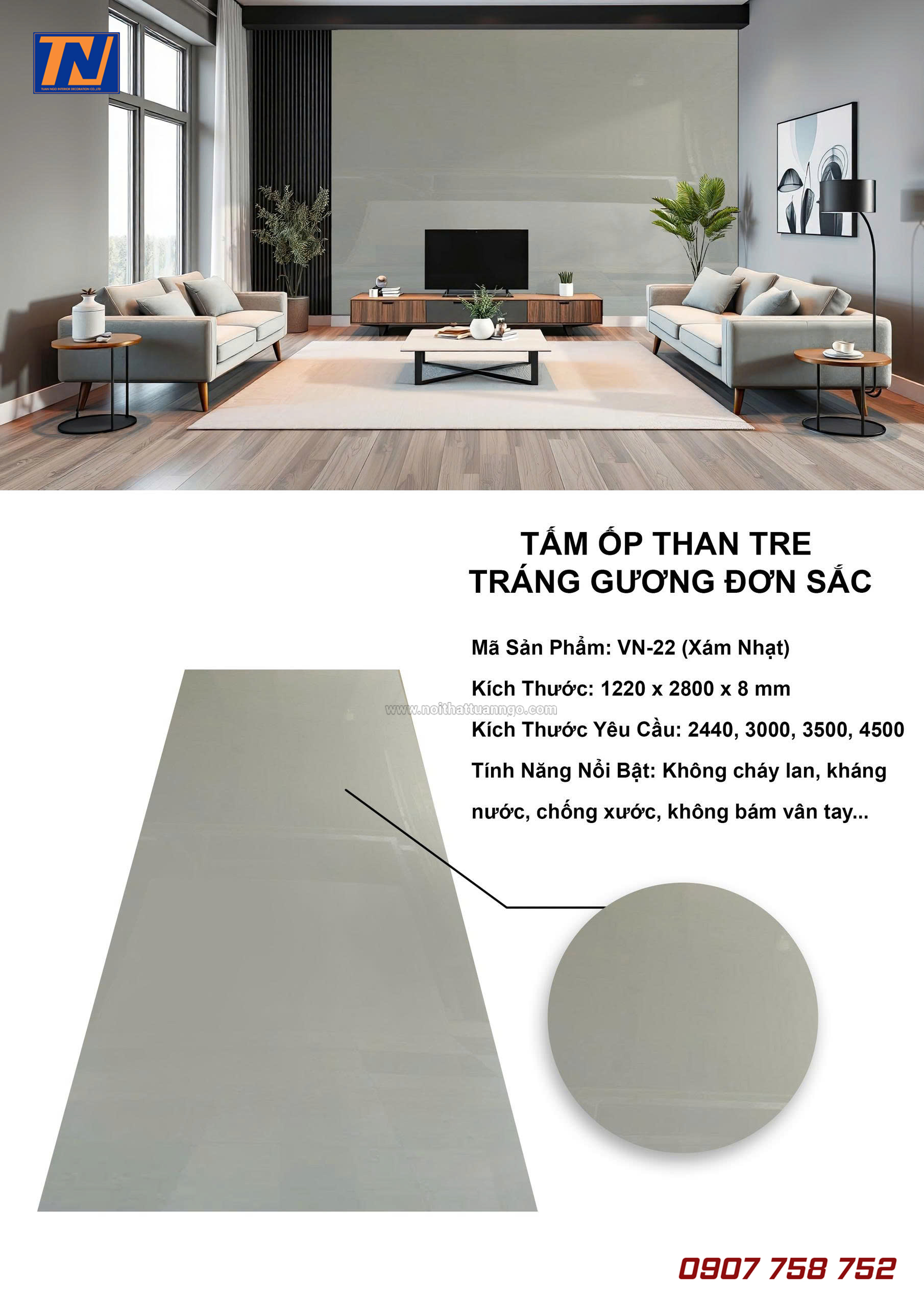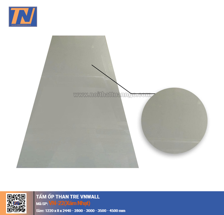 Tấm ốp VNwall được sản xuất từ bột tre tự nhiên kết hợp nhựa cao cấp, giúp chống ẩm, chống mối mọt, và an toàn cho sức khỏe. Với nhiều màu sắc, vân gỗ, vân vải, vân đá đa dạng, sản phẩm dễ dàng ứng dụng cho phòng khách, phòng ngủ, văn phòng, showroom hoặc các công trình cao cấp.