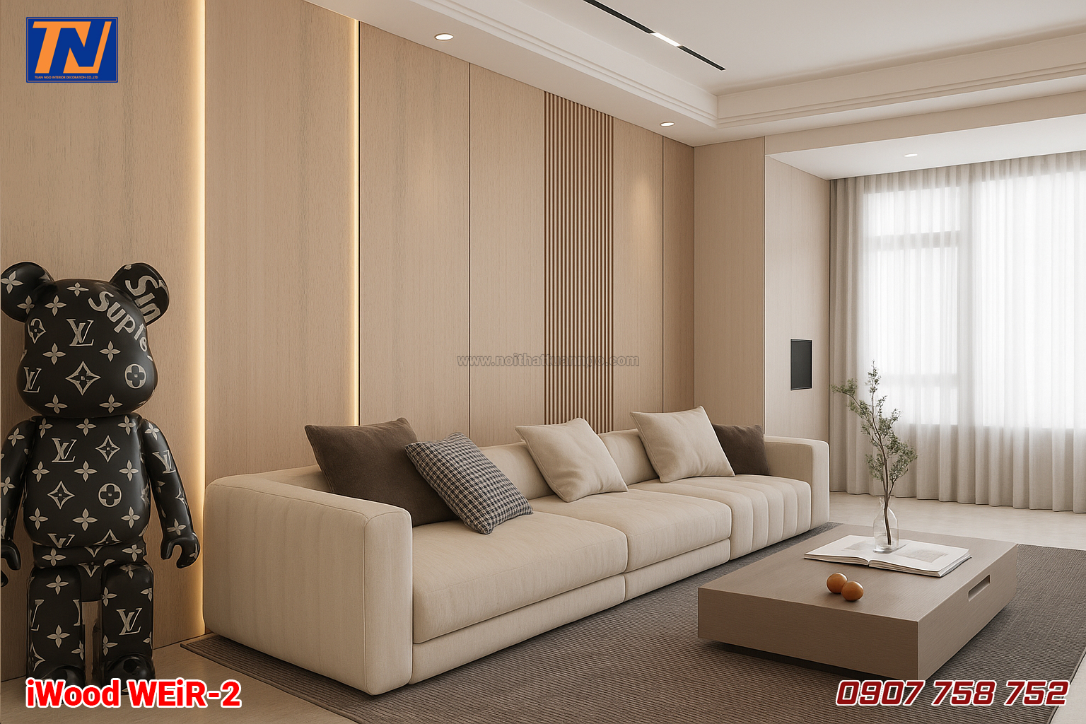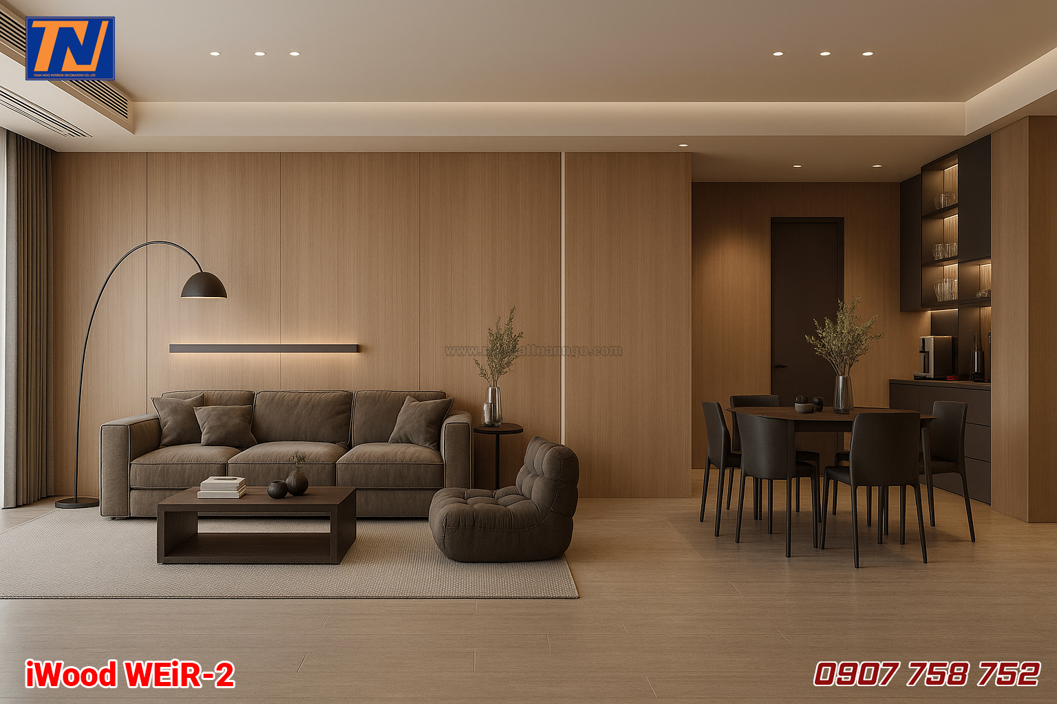 • Ốp tường phòng khách, phòng ngủ, phòng làm việc: tăng tính thẩm mỹ và sự ấm áp.