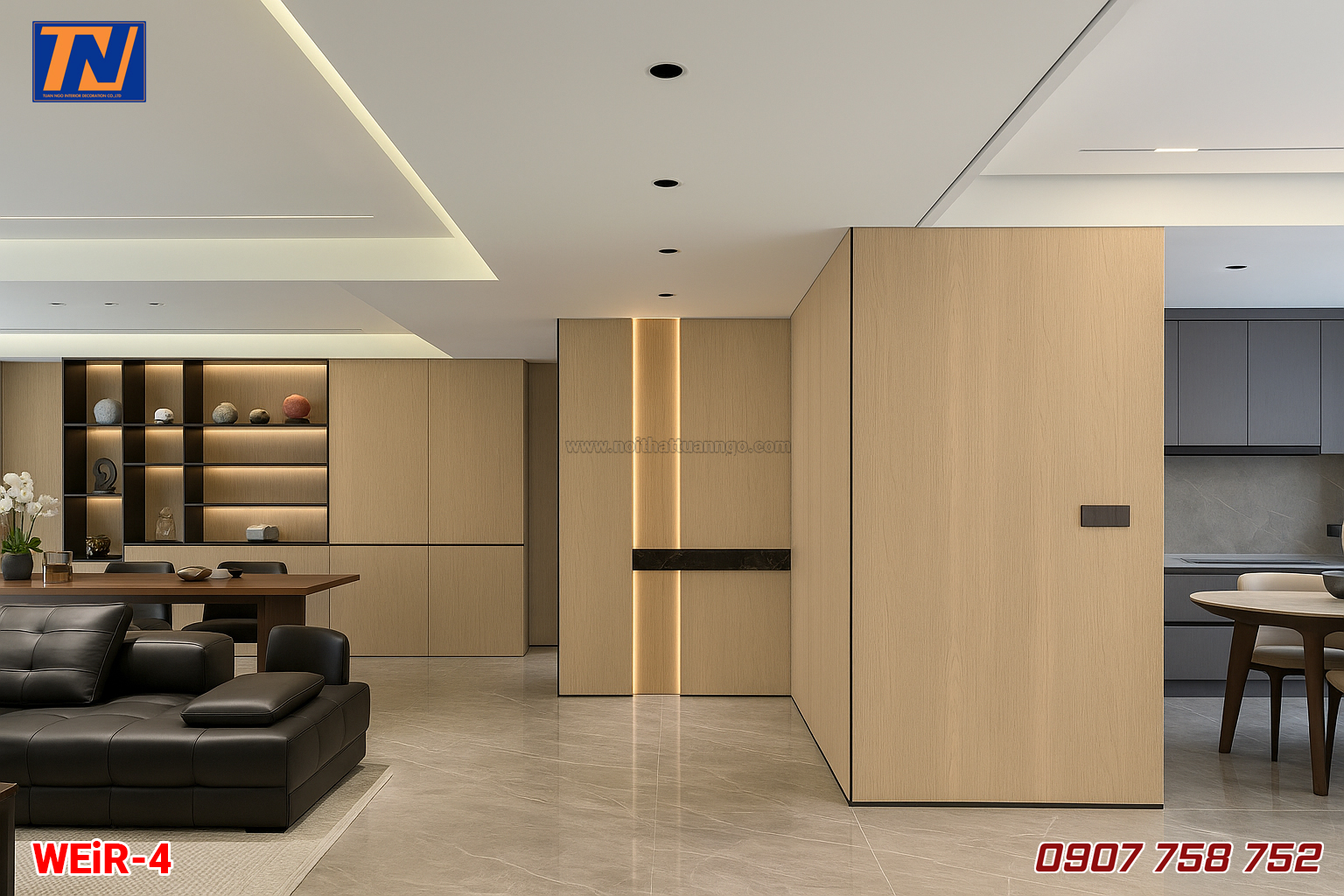 • Ốp trần nhà, sảnh, hành lang: tạo điểm nhấn sang trọng, hiện đại.