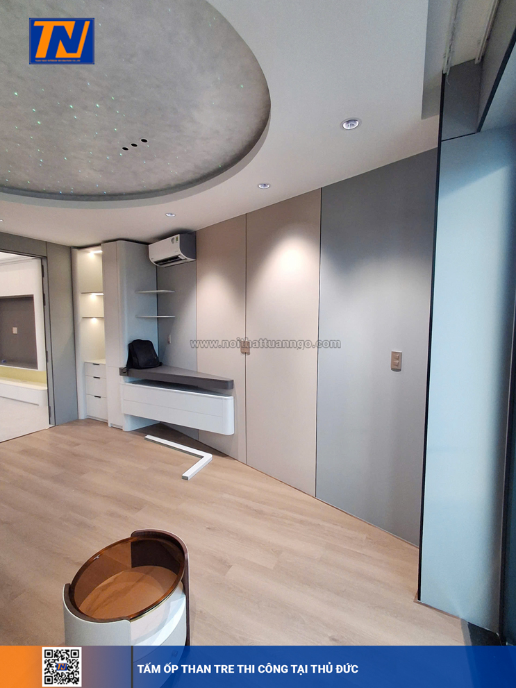 Tấm ốp than tre là vật liệu composite cao cấp được cấu tạo từ bột than tre ép nhiệt, bề mặt phủ film vân đá, vân gỗ hoặc đơn sắc.